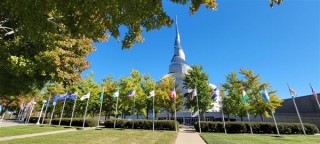 Completed in 1994, the Community of Christ Temple near the Independence Square is inspired by the inner structure of a nautilus shell. Its spiraling, metallic design makes it a striking architectural landmark and the focal point of the Community of Christ World Headquarters campus.